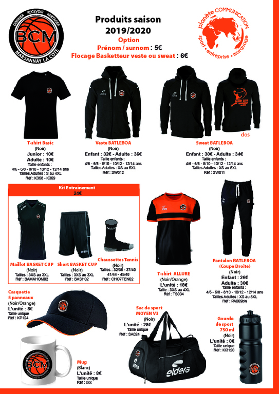 Les commandes boutiques seront prises jusqu'au 18 octobre 2019 auprès de Karine (caoch des poussines). Livraison après les vacances de TOUSSAINT
